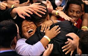 Tonight, more than 200 years after a former colony won the right to determine its own destiny, the task of perfecting our union moves forward. (Cheers, applause.)
